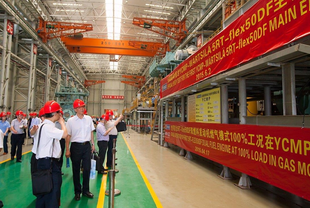 玉柴船動(dòng)是中國(guó)最大柴油機(jī)制造企業(yè)——玉柴集團(tuán)的核心子公司,自成立之初,秉承玉柴“用卓越與領(lǐng)先滿足公眾的動(dòng)力需求”的使命,堅(jiān)持“綠色發(fā)展,和諧共贏”的核心理念,致力于制造更環(huán)保、更可靠、更先進(jìn)的船用主機(jī)。自2009年公司成立以來,玉柴船動(dòng)與WinGD(原瓦錫蘭公司)合作推出了以W-X35、W-X40為代表的新一代全電控共軌低速柴油機(jī)。2013年,與瓦錫蘭集團(tuán)合資成立了瓦錫蘭玉柴發(fā)動(dòng)機(jī)有限公司,生產(chǎn)制造世界先進(jìn)水平的瓦錫蘭20、26、32系列中速柴油機(jī)。在2013年WinGD推出低速機(jī)雙燃料技術(shù)之時(shí),就積極參與推廣低速機(jī)雙燃料技術(shù)的應(yīng)用,投入資源進(jìn)行燃?xì)夤艿馈⑷細(xì)庹窘ㄔO(shè)和試車臺(tái)架改造。2014年3月,玉柴船動(dòng)成功獲得了世界首批雙燃料機(jī)訂單,2015年2月首臺(tái)5RT-flex50DF雙燃料機(jī)在玉柴船動(dòng)完成裝配,4月份燃?xì)饽J椒€(wěn)定運(yùn)行,6月初完成正式交驗(yàn)。該發(fā)動(dòng)機(jī)的排放和運(yùn)行經(jīng)濟(jì)性指標(biāo)完成達(dá)到設(shè)計(jì)要求,除了得到船東、船廠、CCS船級(jí)社的確認(rèn)外,BV船級(jí)社、DNV船級(jí)社也同時(shí)參與測(cè)試并一致認(rèn)可。